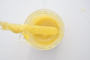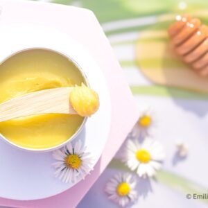 Postanowiłam zmodyfikować formułę – zmniejszyłam ilość wosku pszczelego, zachowując 30% zawartości miodu. Po kilku próbach udało mi się stworzyć maść o idealnej konsystencji: łatwą do rozsmarowania, a co najważniejsze – wcale nie lepką, mimo sporej ilości miodu.