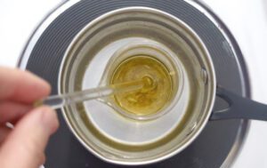 - Rozpuść wosk pszczeli i oliwę w kąpieli wodnej