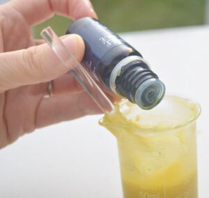 - Na koniec dodaj dwie kropelki olejku rumiankowego, ktory wzmocni przeciwzapalne działanie kremu, szczególnie jesli masz egzemę.