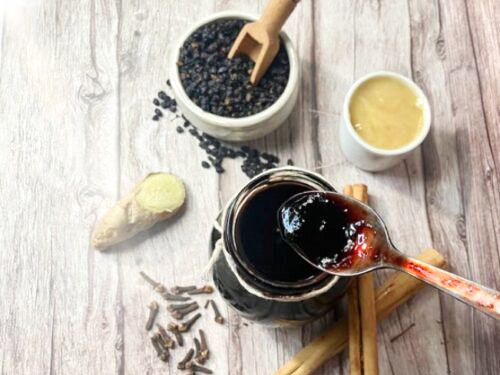 Podczas epidemii grypy w Izraelu w 1993 roku, w badaniu kontrolowanym placebo stwierdzono, że ekstrakt z czarnego bzu skrócił czas powrotu do zdrowia o połowę. Ponadto, mała metaanaliza opublikowana w 2019 roku, obejmująca łącznie 180 osób, wykazała, że czarny bez znacznie zmniejsza objawy górnych dróg oddechowych. Niestety, większość dostępnych syropów na rynku słodzona jest syropen glukozowym lub cukrem. Na szczęście możemy sami zrobić domowy syrop z suszonych owoców czarnego bzu. Po przepis zapraszam tutaj.