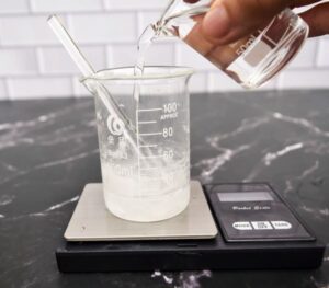 - Odstaw mieszankę na 30 minut, aby kwas hialuronowy wchłonął wodę.