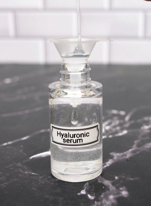 - Odstaw mieszankę na 30 minut, aby kwas hialuronowy wchłonął wodę.